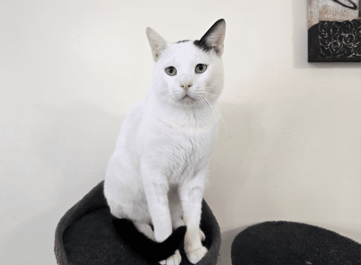 Very sweet and loving. Calm and friendly. Loves cuddles. Bit shy at first but he is super affectionate once he is familiar. Loves to will follow you around. Good with older kids. Gets along with other cats. Apartment only.